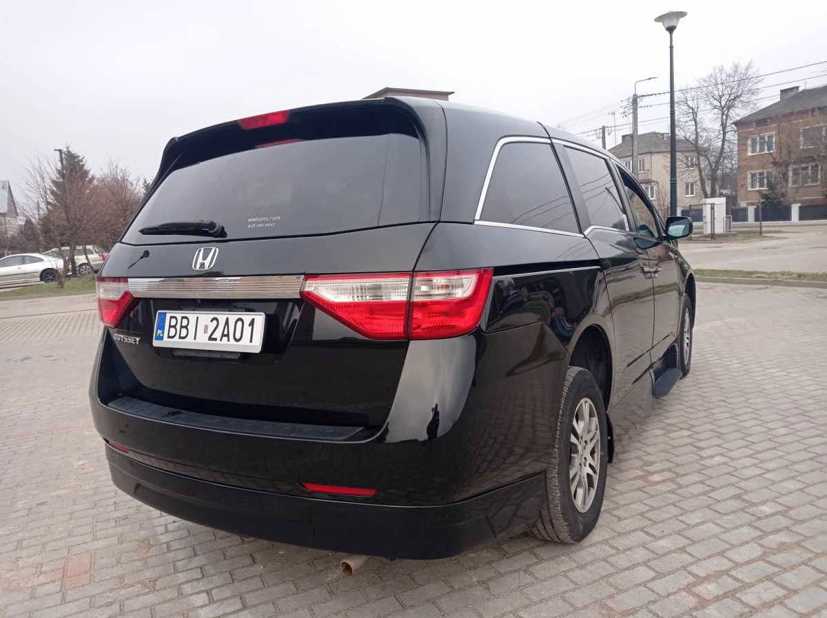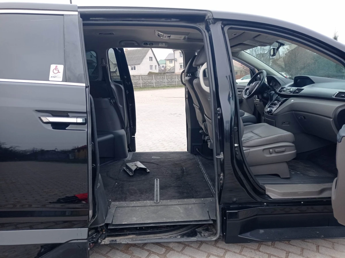 Sprzedam Honda Odyssey z 2013 roku, benzyna, automat z przebiegiem 168 tys. mil (270 tys.km). Auto przystosowane do przewozu osoby niepełnosprawnej wyposażone w boczny wjazd i automatycznie wysuwaną platformą z podłogi. Honda posiada 5 miejsc siedzących oraz 1 miejsce dla osoby na wózku. Wnętrze czyste i zadbane. Auto odpala bez najmniejszych problemów, praca silnika cicha bez żadnych niepokojących odgłosów. Bogate wyposażenie: el. otwierane drzwi oraz klapa, podgrzewane fotele kierowcy i pasażera, szyberdach, kierownica wielofunkcyjna, kamera cofania, nabita klimatyzacja, skórzane fotele i tylna kanapa oraz wiele innych funkcji (widocznych na zdjęciach).